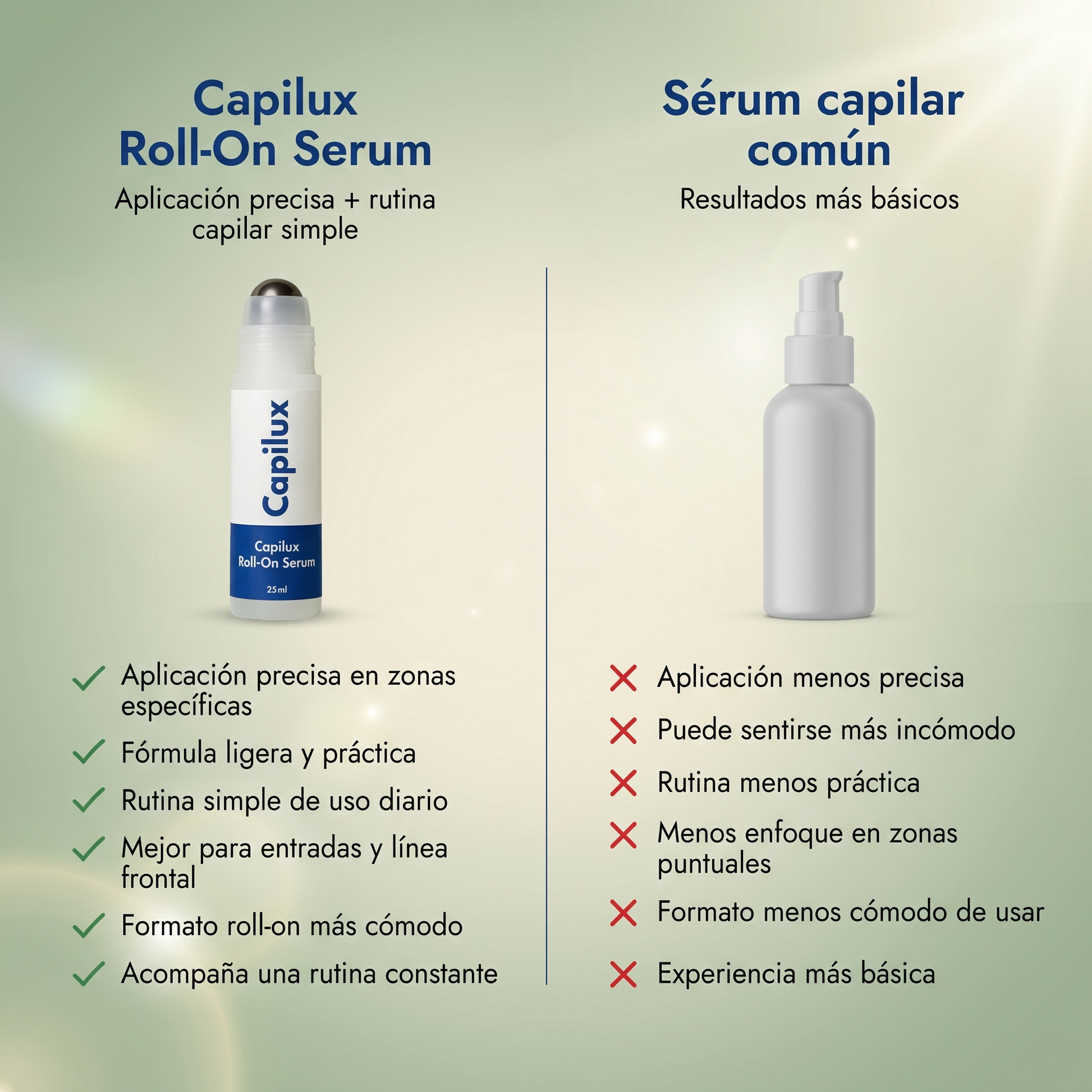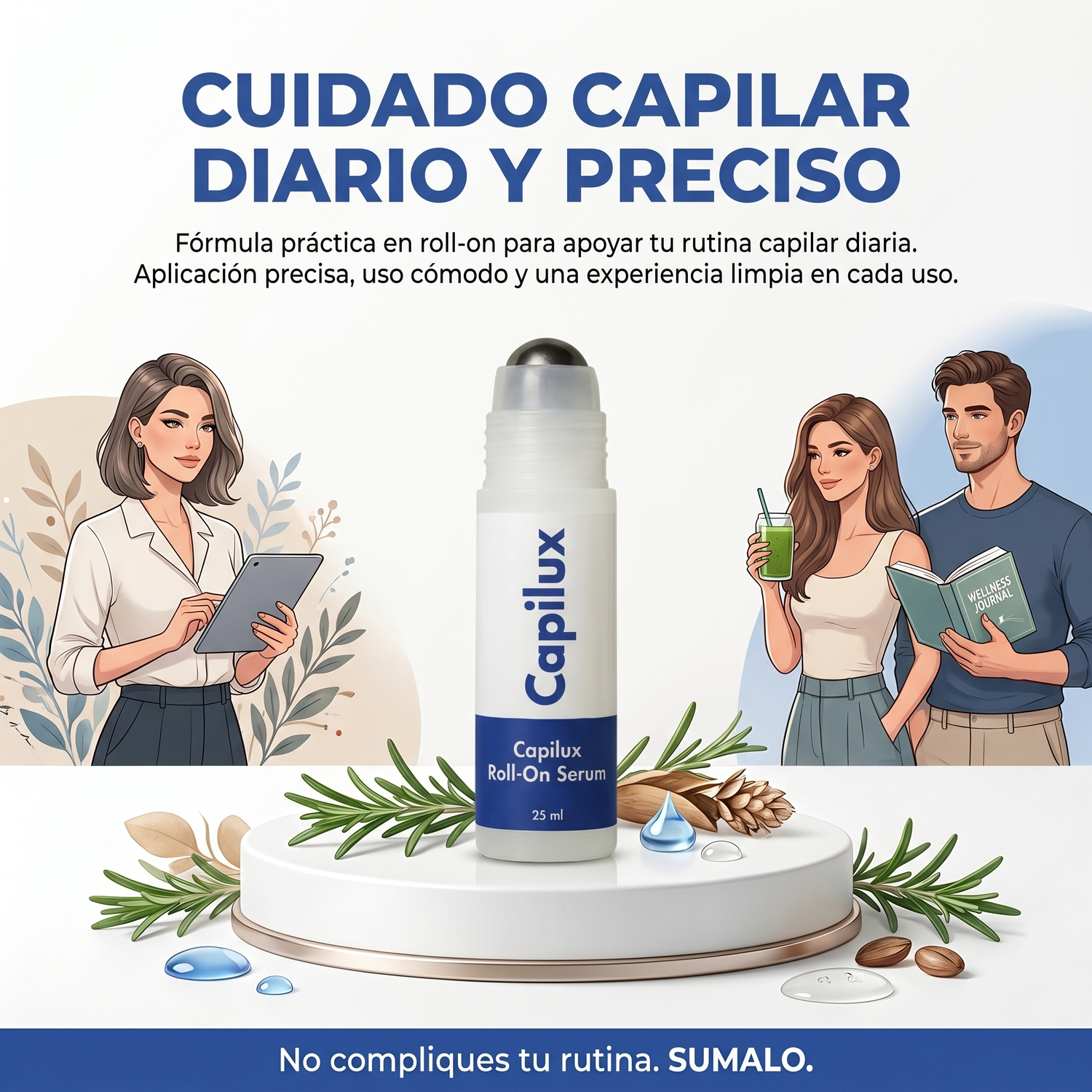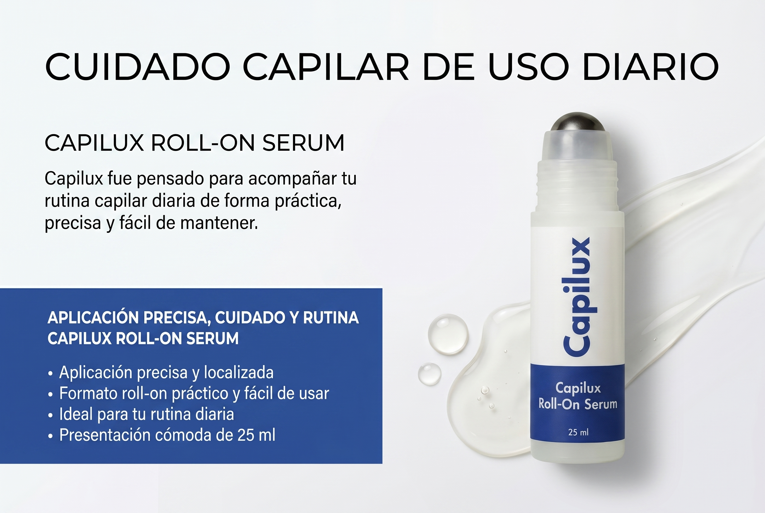 Capilux Roll-On está formulado para uso diario sin riesgo de acumulación o residuos grasos. Puedes aplicarlo cada vez que laves tu cabello o cuando lo necesites. Para mejores resultados, úsalo regularmente como parte de tu rutina de cuidado capilar.